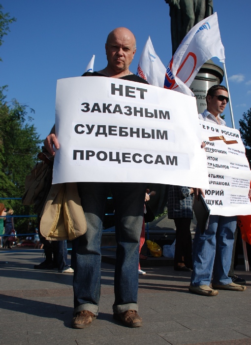 В мероприятии приняло участие более 30 человек. Участники акции держали плакаты: "Нам нужны независимые судьи, а не мучители людей!", "Нет заказным судебным процессам!", "Свободу политзаключенным-лимоновцам!".