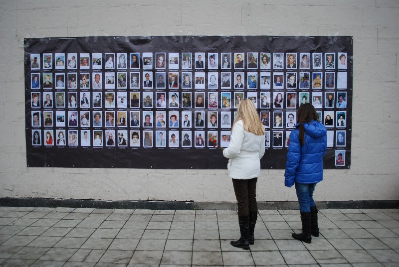 Как всегда у портретов погибших зажгли свечи, возложили цветы. После минуты молчания были зачитаны имена 130 погибших, затем в небо выпустили 130 белых воздушных шаров.