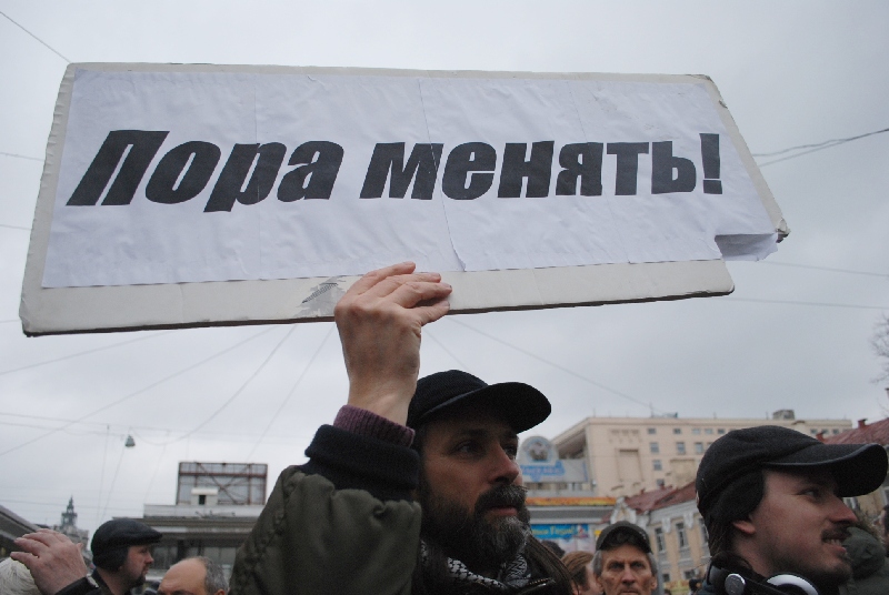 Участники скандировали: "Пора менять!", "Перезагрузка!", "В отставку Нургалиева!", "Долой полицейское государство!", "Нам нужна другая милиция".