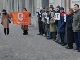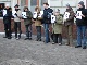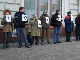 В акции принимали участие около 50 человек. Некоторые из них держали в руках таблички с буквами и, выстроившись в цепочку, составили лозунг "Уважайте Конституцию!".