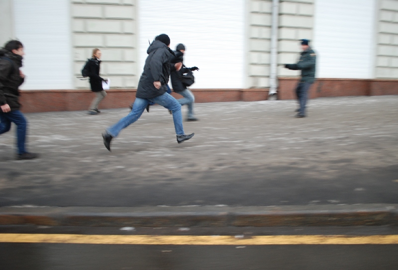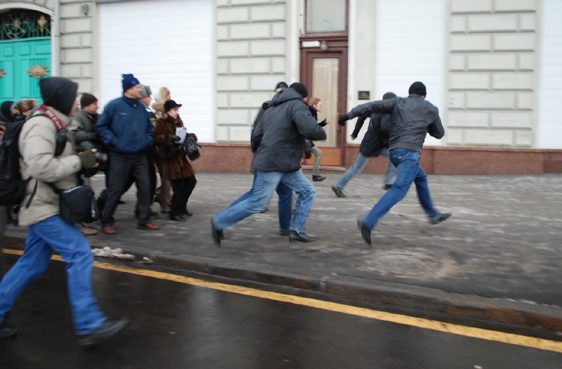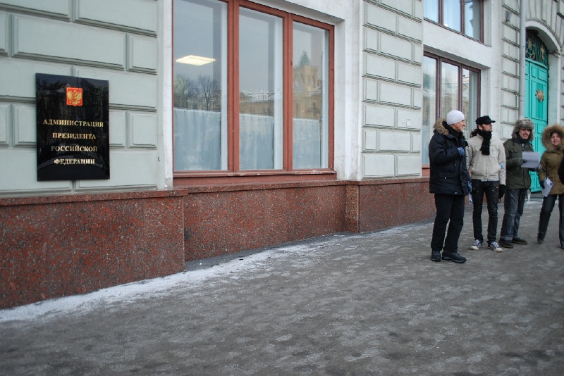Спустя несколько минут после начала акции из здания администрации выбежали люди в штатском, предположительно сотрудники ФСО, и начали жестко задерживать активистов.