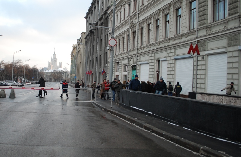 Отметим, что этой акции предшествовал митинг на площади Пречистенские ворота, которая проходила в виде "поминок" по Конституции. Участники митинга зажгли свечи и возложили цветы к Конституции, играла траурная музыка. Всего в нем приняли участие около ста человек.