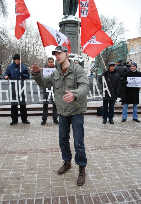 Выступавший на пикете лидер белорусских нацболов Евгений Контуш отметил, что в России, как и Белоруссии граждан лишают права на протест.