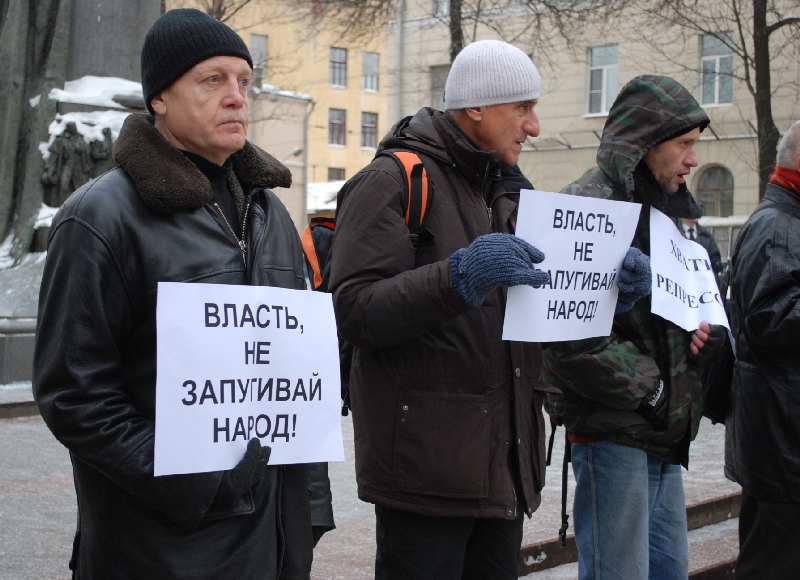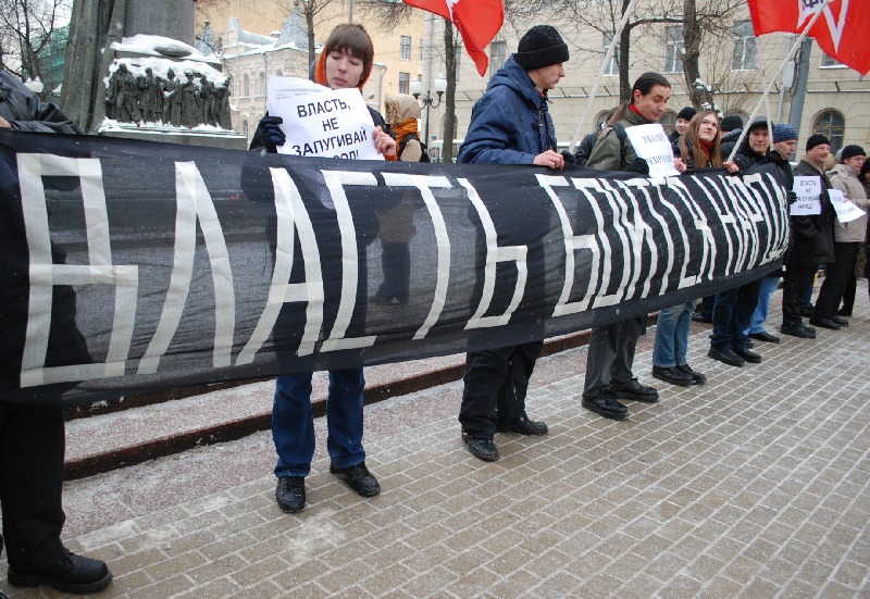 В акции приняли участие более 50 человек: это активисты Левого фронта, РКСМ(б), ОГФ, "Нации свободы" и нацболы. В руках они держали плакаты "Власть, не запугивай народ!" и "Хватит репрессий!"