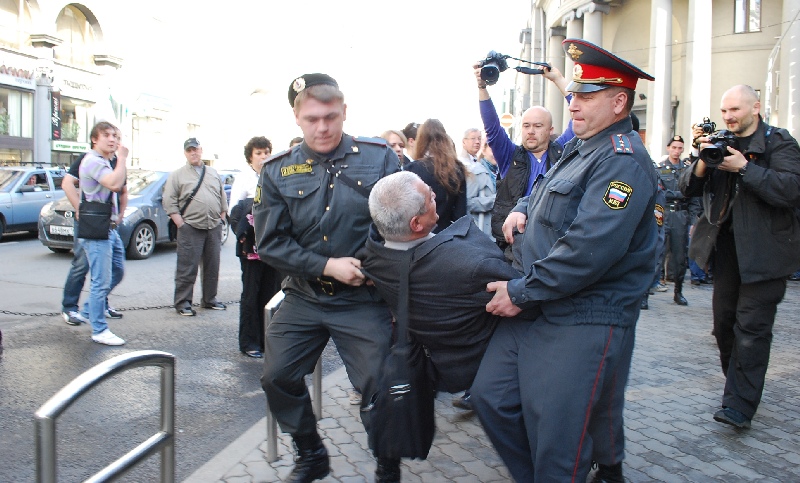 Начиная с 9:00 5 мая к зданию Мосгордумы начали подходить оппозиционные активисты и недовольные горожане. Более 20 человек, в том числе представители СМИ, были задержаны ОМОНом. Среди задержанных — лидеры Левого фронта Сергей Удальцов и Константин Косякин, активисты "Солидарности" Всеволод Чернозуб, Серж Константинов и Константин Янкаускас, а также несколько активистов молодежной "Справедливой России".