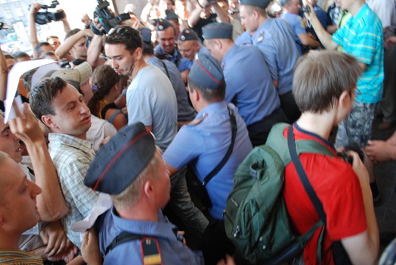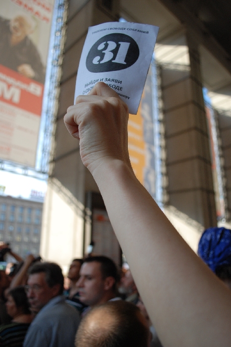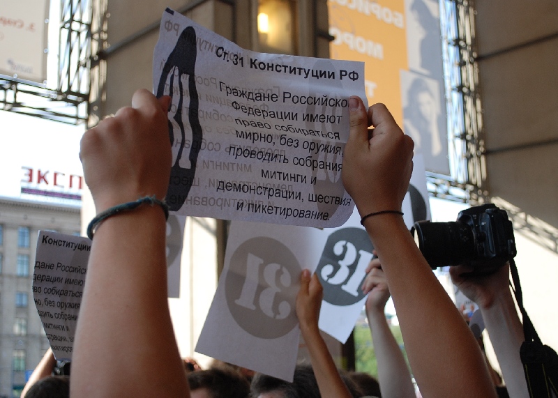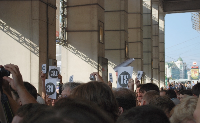 В десятой акции в защиту Конституции, которая проходит каждое 31-е число, 31 июля приняли участие более 1000 человек. ГУВД оценило количество участников в 200.