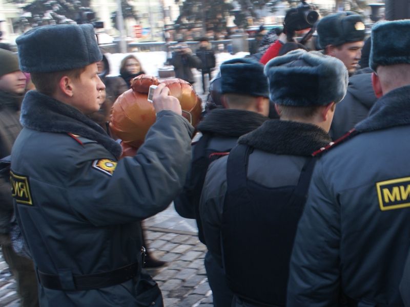 В Москве возле станции метро "Китай-город" во время акции защитников Химкинского леса активистов задержали за то, что они надували воздушный шар в виде медведя. Об этом 22 декабря сообщил с места событий корреспондент Каспаров.Ru.