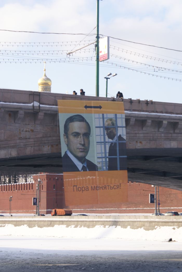 Активисты движения "Мы" 20 февраля провели акцию "Пора меняться", в которой выступили против репрессий в отношении экс-главы "ЮКОСа" Михаила Ходорковского и бывшего руководителя МФО "МЕНАТЕП" Платона Лебедева. Свою позицию движение выразило в баннере, растянутом на Большом Москворецком мосту, сообщает корреспондент Каспаров.Ru.