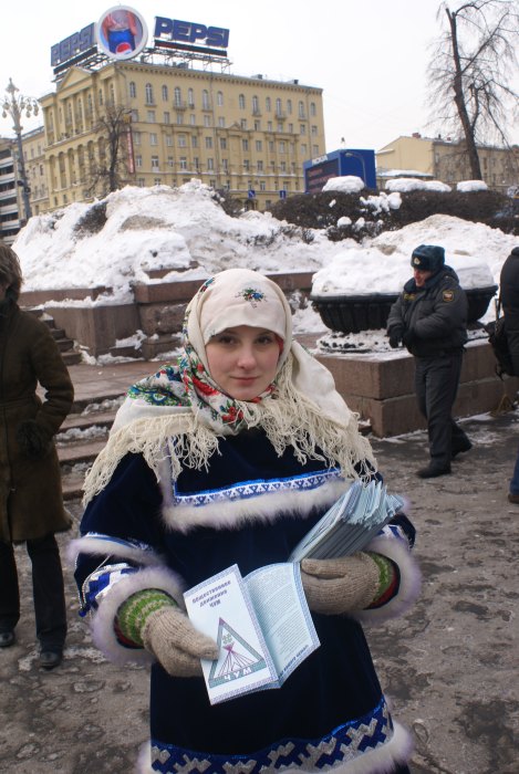 В акции приняли участие около 40 человек с плакатами "Чум" против грязных технологий", "Чум для Миронова" и "Миронов, зачем ты выдвинул кандидатов-двойников?". Они также установили на площади импровизированный чум.
