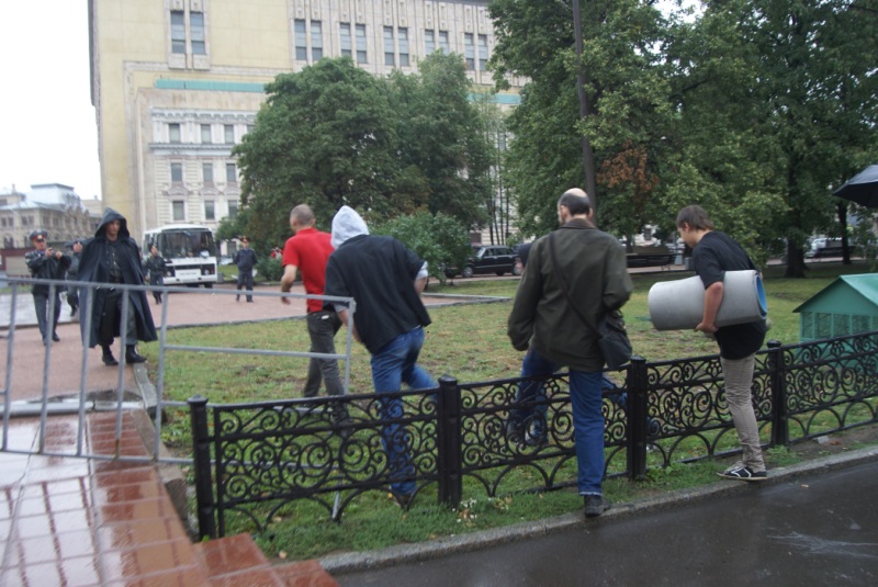 Оппозиционеров схватили около 14:00 на подходе к Соловецкому камню, где планировалось проведение очередной сидячей забастовки. По словам очевидцев, полицейский действовали жестко.