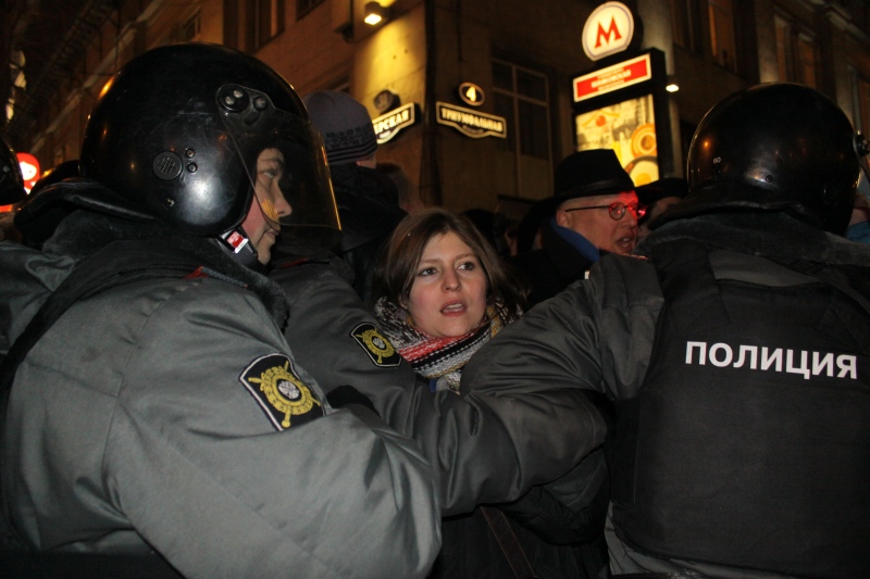 22:52 На Триумфальной была избита полицейскими кандидат в депутаты Госдумы от "эсеров" Алена Попова.