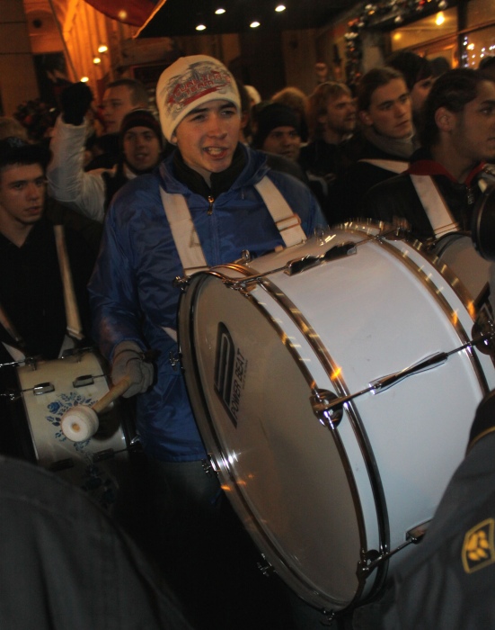 19:28 "Младогады" пытаются заглушить лозунги барабанами.