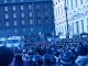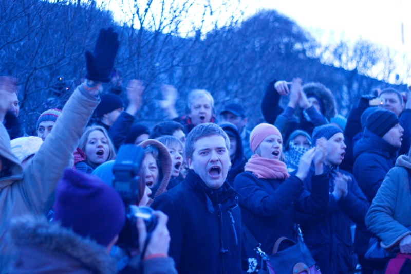 В сотрудников полиции кидали снег, лед и бутылки. Несколько раз из толпы вылетали дымовые шашки и небольшие фейерверки.