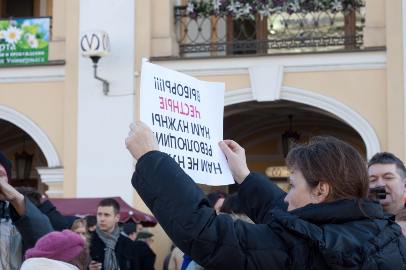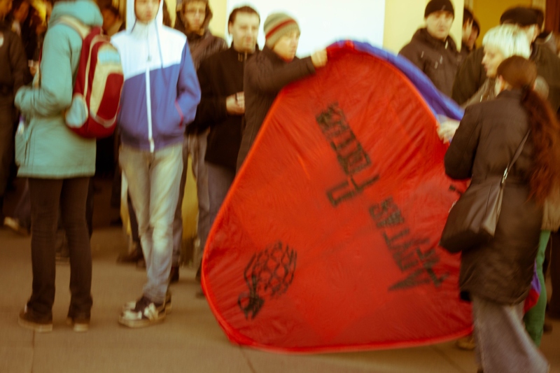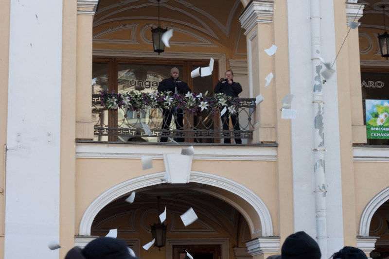 Акция началась с задержания оппозиционерки Ольги Курносовой и националиста Николая Бондарика, которые разбросали возле метро листовки "Русская весна" с планом действий оппозиции на ближайший год.