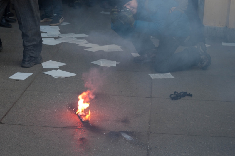 Затем несколько девушек зажгли файеры и также раскидали листовки.