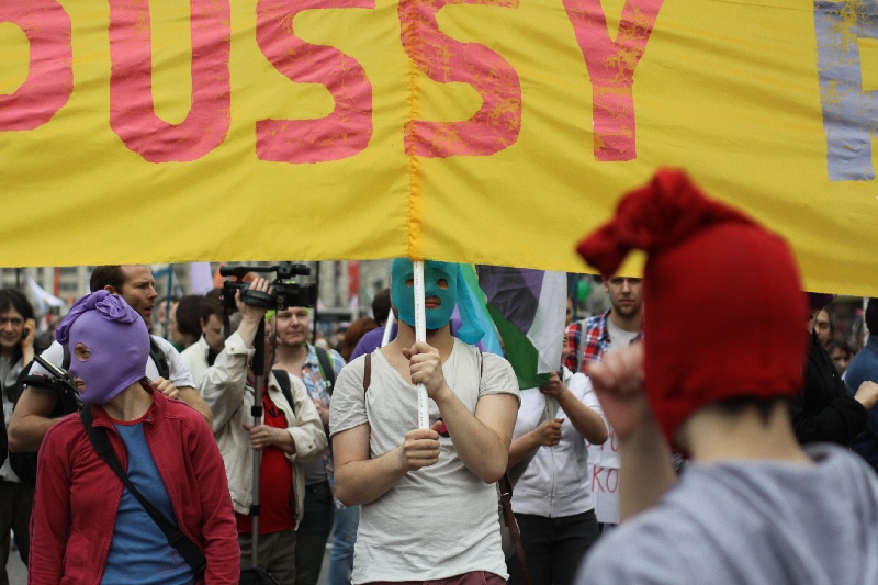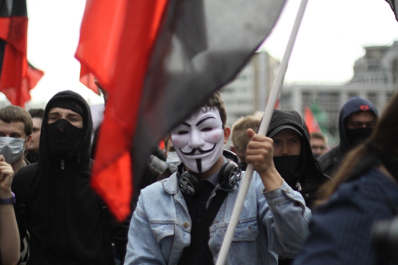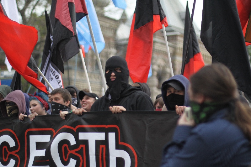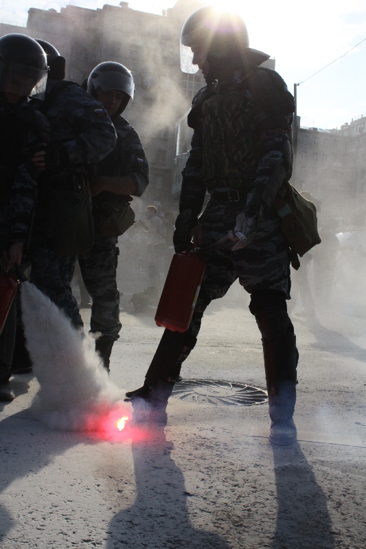 Некоторые участники запускают файеры. Кто-то распылил слезоточивый газ.