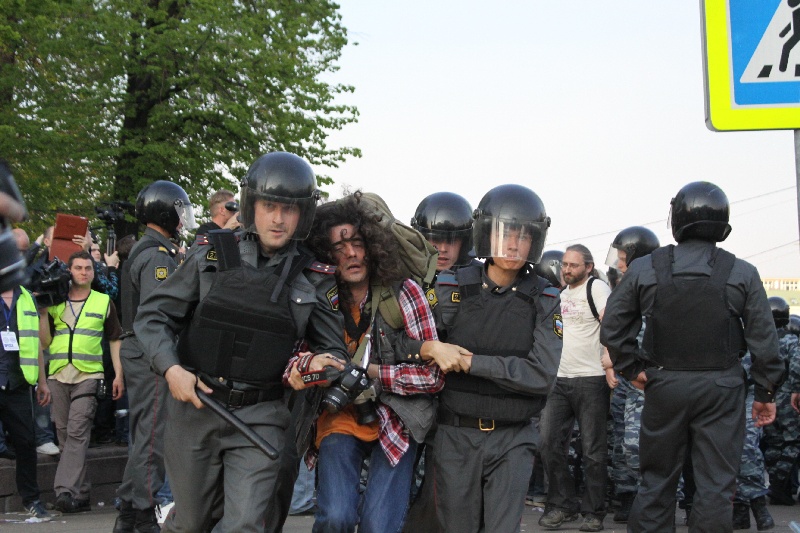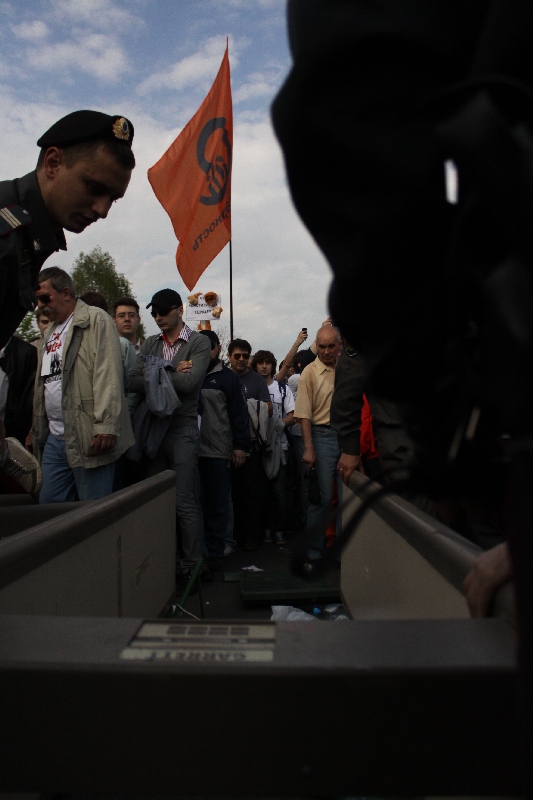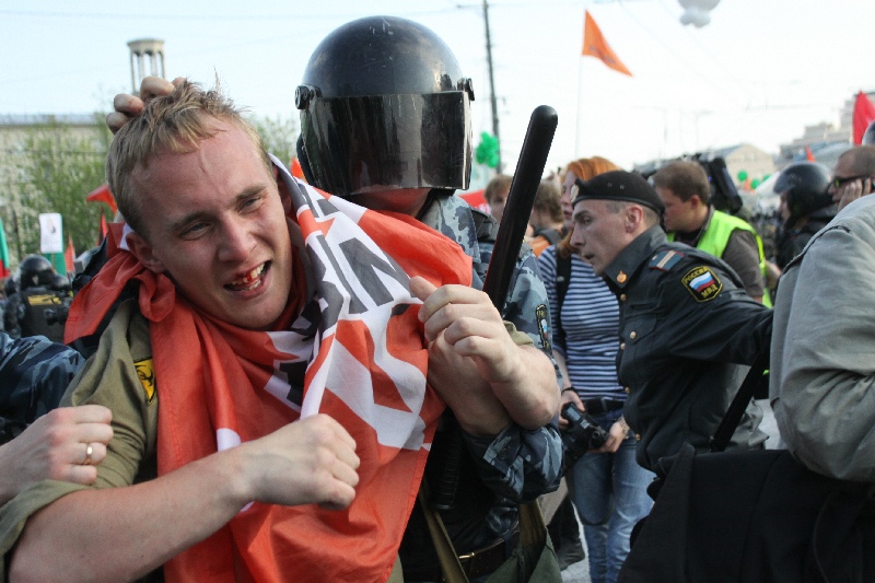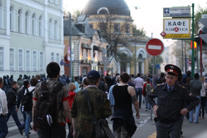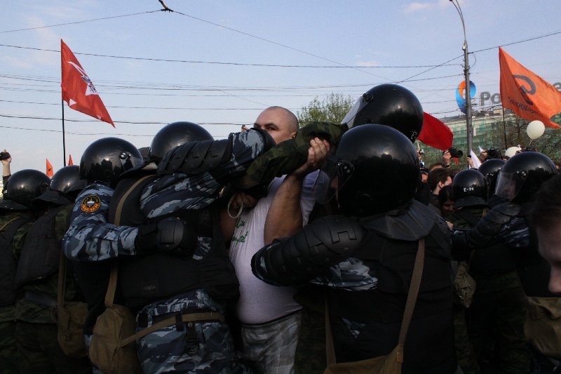 Участники "Марша миллионов" прорвали полицейский кордон и устремились поддержать забастовку Навального, Немцова и Удальцова, передает 6 мая корреспондент Каспаров.Ru.
