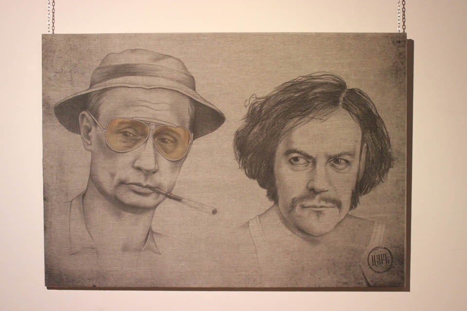Самой популярной стала работа с изображением Владимира Путина в образе журналиста Рауля Дюка, главного героя романа Хантера Томпсона "Страх и Ненависть в Лас-Вегасе, и Дмитрия Медведева в образе его адвоката, доктора юриспруденции мистера Гонзо. В зале рядом с территорией выставки показывали сам фильм на английском языке с русскими субтитрами.
