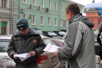 Около десятка человек собрались во дворе Думы. Они поставили плакат "Свобода передвижения? Нет, не слышал" и начали раздавать листовки. В них перечисляются меры ответственности за нарушение закона, а также говорится о том, что положения закона нарушают статью 27 Конституции: "Каждый, кто законно находится на территории Российской Федерации, имеет право свободно передвигаться, выбирать место пребывания и жительства". Активисты призывают граждан противодействовать закону - обращаться к президенту и правительству, распространять информацию о неконституционном законе в СМИ, а также информировать о нем знакомых.