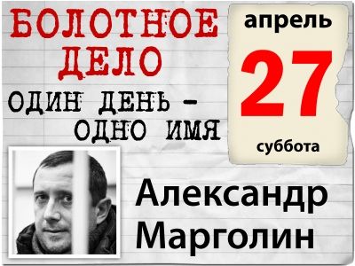 27 апреля – день солидарности с Александром Марголиным - одним из арестованных по так называемому "болотному делу". Его арестовали спустя девять с половиной месяцев после событий на Болотной площади. Видеообращения в его поддержку записали родные Марголина, писатель Дмитрий Быков, журналист Тихон Дзядко и карикатурист Алексей Меринов, знакомый с Марголиным по фанатской среде.