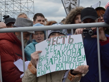 Не мог обойтись этот митинг без выступления Алексея Навального, который пришел на акцию вместе со своей супругой. "Новый лозунг я не принес сегодня, зато пришел с женой, может, это и есть новый лозунг: "Приходи с женой или мужем!" — сказал он. —