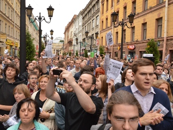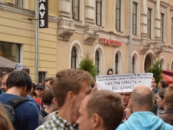В Санкт-Петербурге, так же как и в Москве, прошла несогласованная с городскими властями акция в поддержку оппозиционера Алексея Навального, осужденного на пять лет колонии по делу о хищениях в "Кировлесе".
