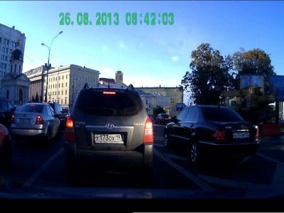 На видеозаписи инцидента видно как представительский Mercedes с госномером А177МР 97RUS действительно объезжает пробку по разделительной полосе, при этом на автомобиле отсутствует "мигалка".