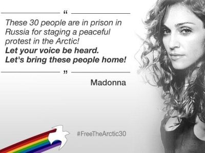 Призыв Мадонны был изначально опубликован в ее фотоблоге Instagram. Певица разместила в нем изображение с плакатом, на котором видна надпись "Освободите Арктик 30".