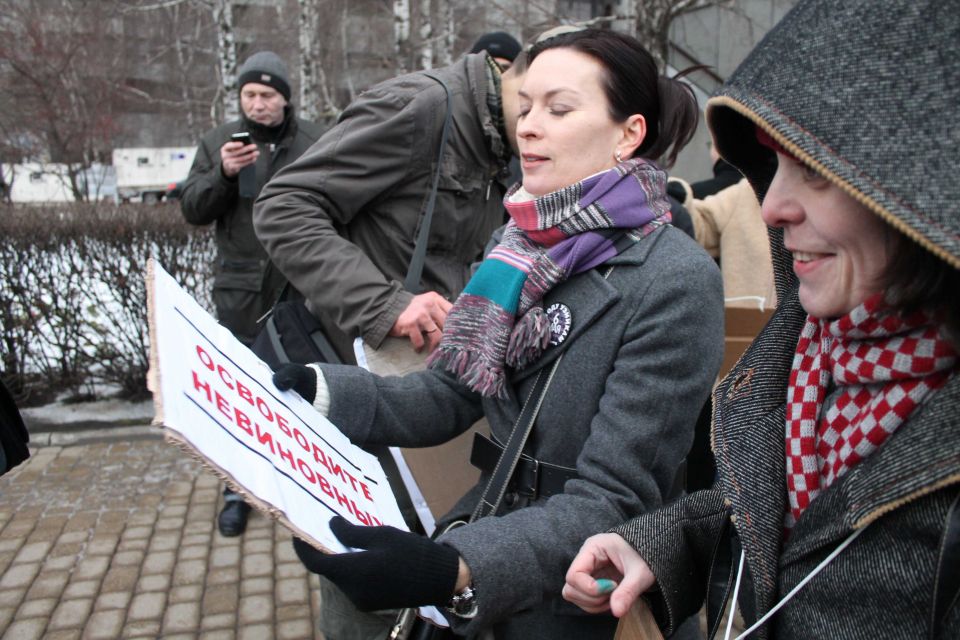 Активисты, собравшие подписи за свободу политзаключенных для передачи президенту, были арестованы у центра международной торговли, где начиналась ежегодная пресс-конференция Владимира Путина с журналистами.