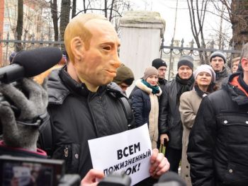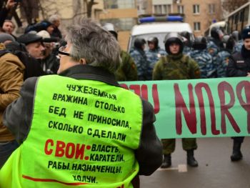 "Россия без Путина", "Когда мы едины — мы непобедимы!", "Банду, геть!", "Россия будет свободной". Также активисты вывесили баннер с надписью "Всех не пересажаете".