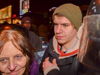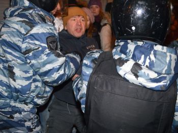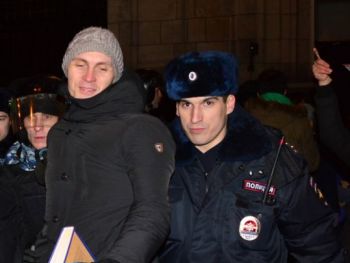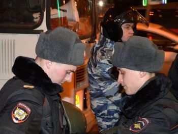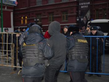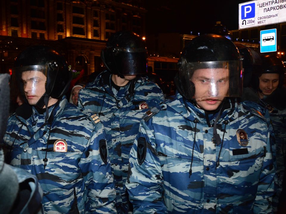 Пришедших на Манежную площадь людей полиция оттеснила в сторону метро "Площадь Революции". При этом некоторые были препровождены ОМОНом в полицейские автозаки.