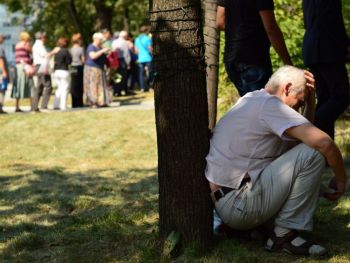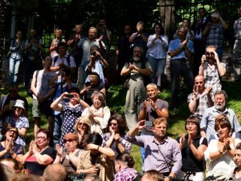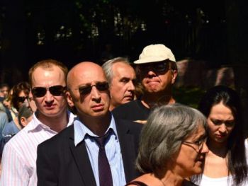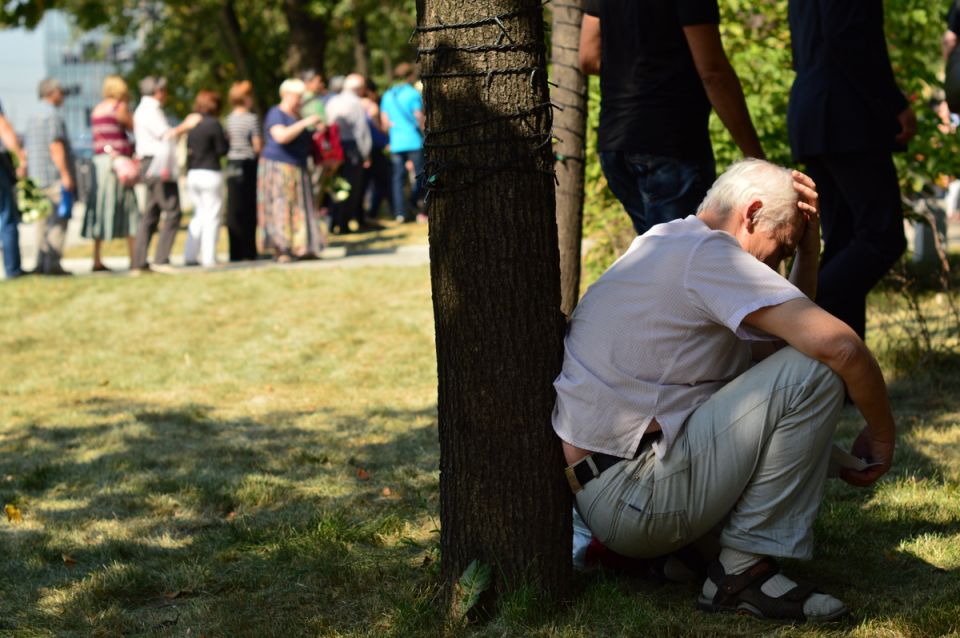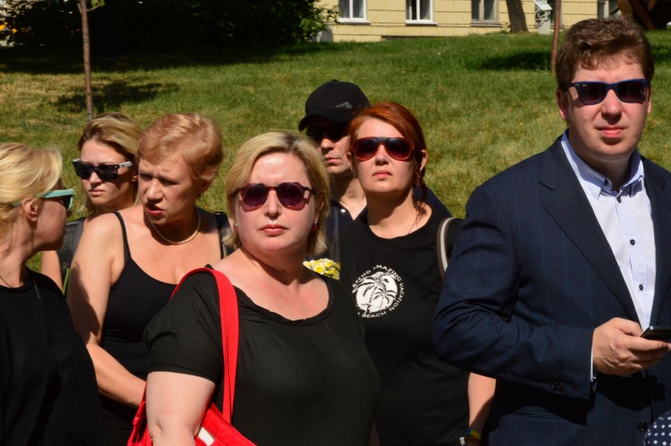 На панихиде присутствуют Виктор Шендерович, Ольга Романова, Сергей Алексашенко, Лев Рубинштейн и другие.