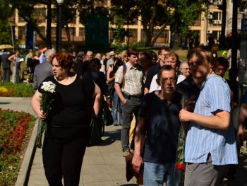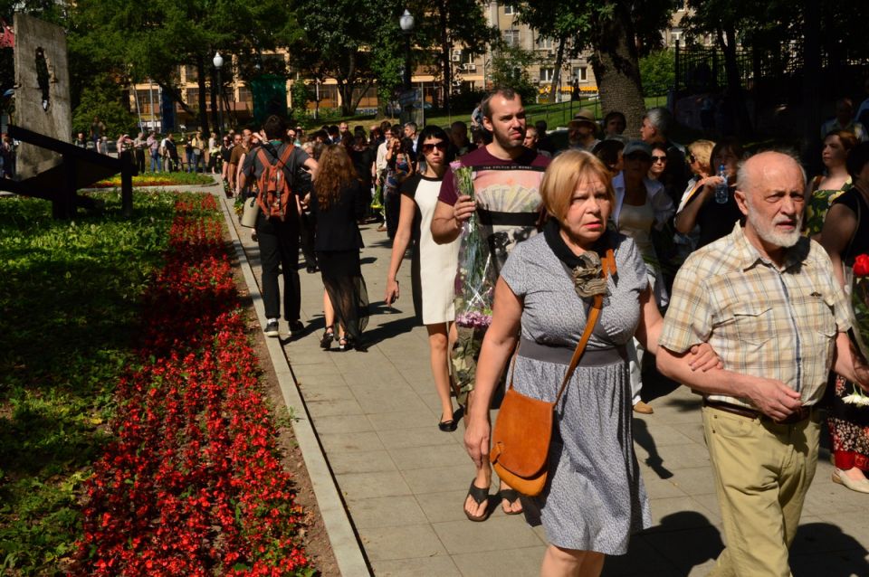 Прощание окончилось вынесением гроба. Около 500 человек скандировали "Герои не умирают!" и "Россия будет свободна!"