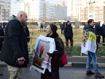 Тем временем от станции метро Октябрьское поле до Щукинской проходил "Русский марш за Новороссию". К участию в акции призывал бывший полевой командир Игорь Стрелков (Гиркин). В самый последний момент он отказался выходить на шествие, сославшись на расхождения в отношении к российской власти с формальным организатором мероприятия. На эту акцию, по оценке столичной полиции, пришло 1,5 тысячи человек.