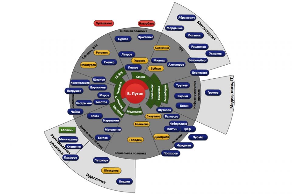 На картинке влияние окружения Путина выглядит внушительно. Ряды сплочены в этом неформальном органе власти, а влияние "самого" неоспоримо.
