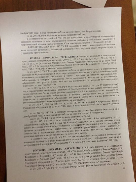 Ранее в ходе обсуждения последствий вердикта прокурор потребовала приговорить Баклагина и Исаева к пожизненному заключению, а Волкова — к 25 годам колонии.