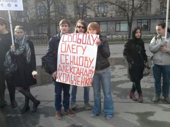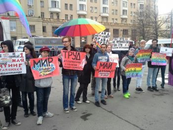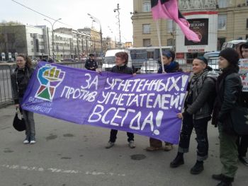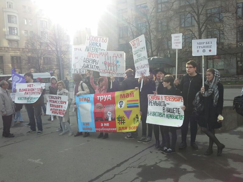 На Триумфальную площадь вышли анархисты, феминистки и представители таких левых движений, как "Автономное действие", Союз левых демократов, Российское социалистическое движение, социалистическая группа "Манифест", Femband и других.