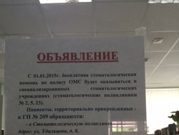 На вопрос, зачем это было сделано, я, как пенсионер, которому удобно лечиться рядом с домом, вразумительного ответа получить не смог. Пришлось поехать в одну из предлагаемых специализированных стомполиклиник, где, дескать, предоставляют бесплатное лечение.