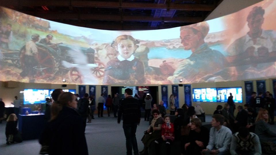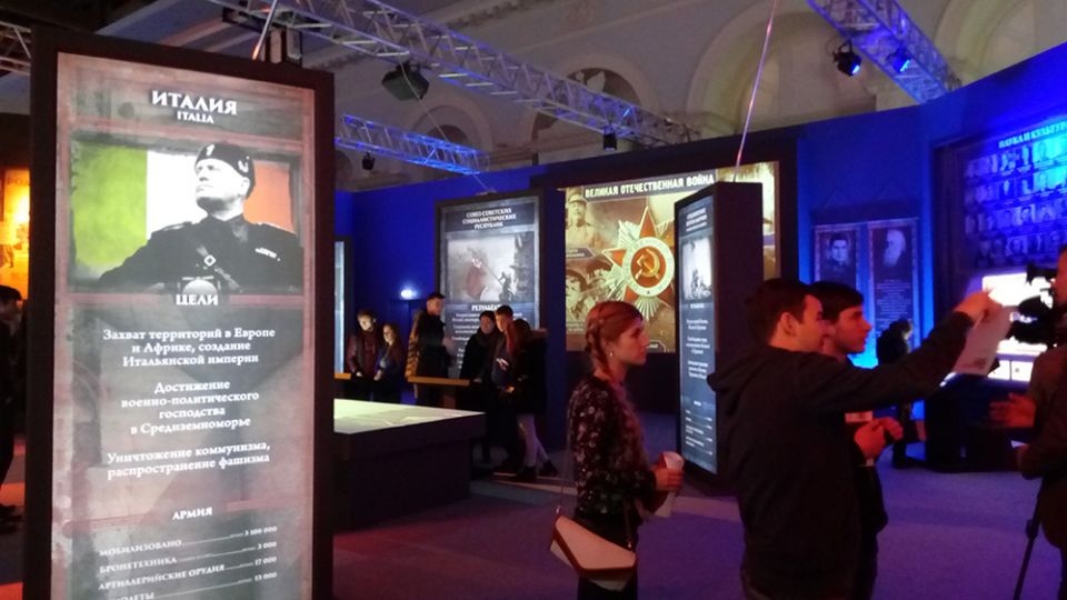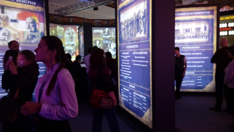 Авторы фактически попытались найти компромисс между противоречиями отечественной истории, примирив их в несложной мысли о величии и мощи страны на разных этапах ее развития, вне зависимости от того, были ли у власти цари или большевики. Недаром в экспозиции соседствуют промышленные достижения России до 1914 года и в эпоху индустриализации, а советские писатели славят широту души русского народа и благородство империи вместе с белоэмигрантами. Однако в достойную восхищения историю страны, по законам жанра, несколько раз вмешивалось и безусловное зло. Таковым на стендах и в коротких фильмах предстают революции (равно 1905, 1917 и 1991 года), а также их сторонники, зачинщики и вольные и невольные пособники (главными героями здесь становятся русские либералы).