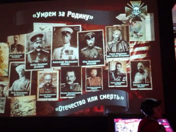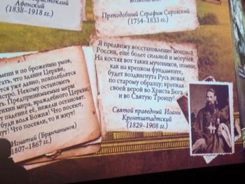 Не случайно один из вопросов, ответы на которые посетители узнают из краткого фильма на выходе с выставки: "Какая страна получила наибольшую финансовую выгоду в результате I и II мировых воин?" (Правильный ответ — США). Волей-неволей возникает ощущение, что главная цель мероприятия не просто рассказать об истории России и православной церкви, пусть даже в "зачищенной" от всех противоречий официозной трактовке, а лишний раз напомнить посетителям телеверсию ответа на ставший сакральным вопрос, кто строит козни против отечества. Цитаты говорят сами за себя.