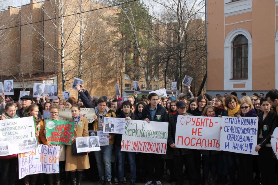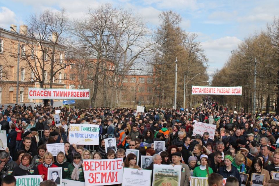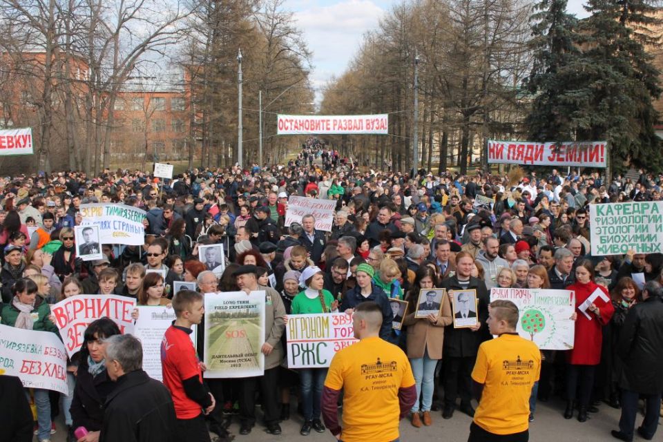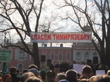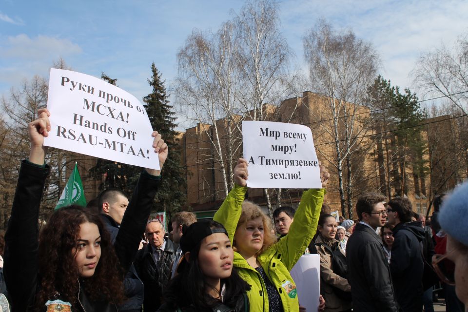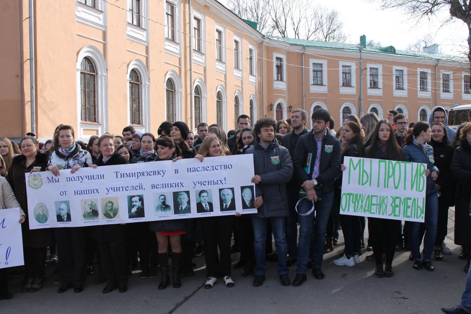 В конце митинга протестующим объявили, что премьер-министр Дмитрий Медведев уже поручил Минсельхозу и Агентству по ипотечному жилищному кредитованию провести дополнительные общественные обсуждения по ситуации с отчуждением земель Тимирязевки. Но ни студентов, ни преподавателей это уже не устраивало. "Какой толк обсуждать? — крикнул кто-то из толпы. — Не отдадим земли! Один за всех и все за одного!"