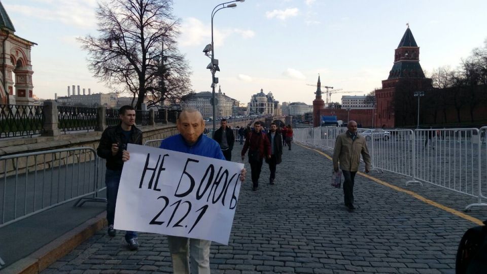 "Я хочу показать абсурдность статьи о неоднократном нарушении порядка проведения массовых мероприятий", — объяснил мотив своих повторяющихся акций Рословцев.