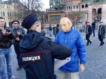 В центре Москвы задержан активист Роман Рословцев, шедший в маске Путина по Варварке по направлению к Красной площади. Об этом сообщает корреспондент Каспаров.Ru.