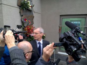 Затем слово взяла представитель американского посольства и озвучила его позицию. Они потребовали найти и наказать заказчика, а также выразили обеспокоенность, что в России убивают журналистов и других публичных деятелей за их высказывания, публикации и за правду. После всех речей собравшиеся возложили цветы к памятной доске убитой журналистки и зажгли свечи.
