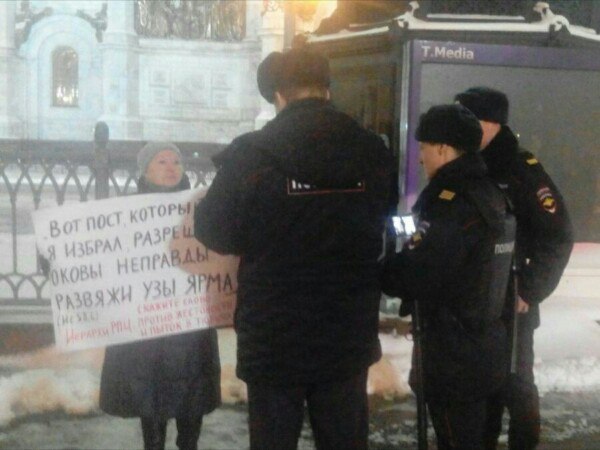 Активисты, считающие себя христианами, собрались для одиночного пикетирования у храма Христа Спасителя в Москве. Об этом 7 ноября сообщает корреспондент Каспаров.Ru.