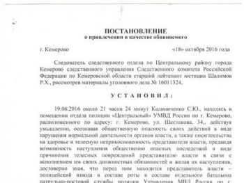 К моим родственникам также применяли силу, их отталкивали, хватали за руки, пытались запретить снимать происходящее. Когда меня завели обратно в отдел, моей матери все-таки удалось пройти вслед за мной, брат смог пройти чуть позже. Один из задержанных видел как меня заталкивали в камеру, незаконно применяя силу, и снимал это на телефон. Впоследствии видео с его телефона загадочным образом исчезло, а сам он начал утверждать в показаниях совсем не то, что он делает на видео, которое успел снять мой брат. Одновременно в отделе появился странный сотрудник в штатском с двумя задержанными, которые больше походили на его подчиненных. Они стали панибратски обращаться ко мне, требовали, чтобы я попросил родственников уйти. Позже выяснилось, что сотрудник в штатском – это известный в Кемерово оперативник Николай Николаевич Рыбак. Рыбак повредил видеокамеру и угрожал моему брату. (Судя по всему, оперативник майор Николай Николаевич Рыбак вообще человек вспыльчивый. Ранее в частности появилась информация о том, что в дорожном споре данный сотрудник применил травматический пистолет, выстрелив в лицо оппоненту, кандидату юридических наук 50-летнему Виталию Шелестюкову).