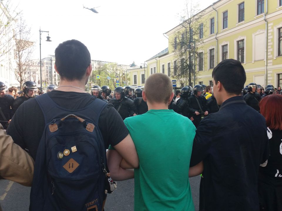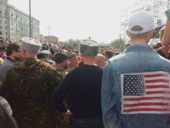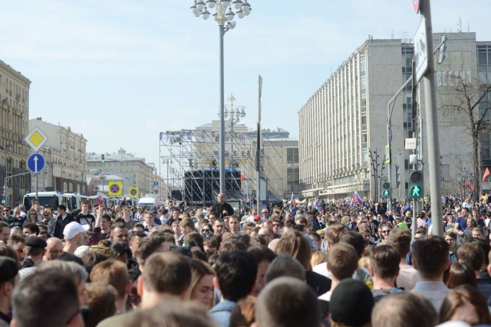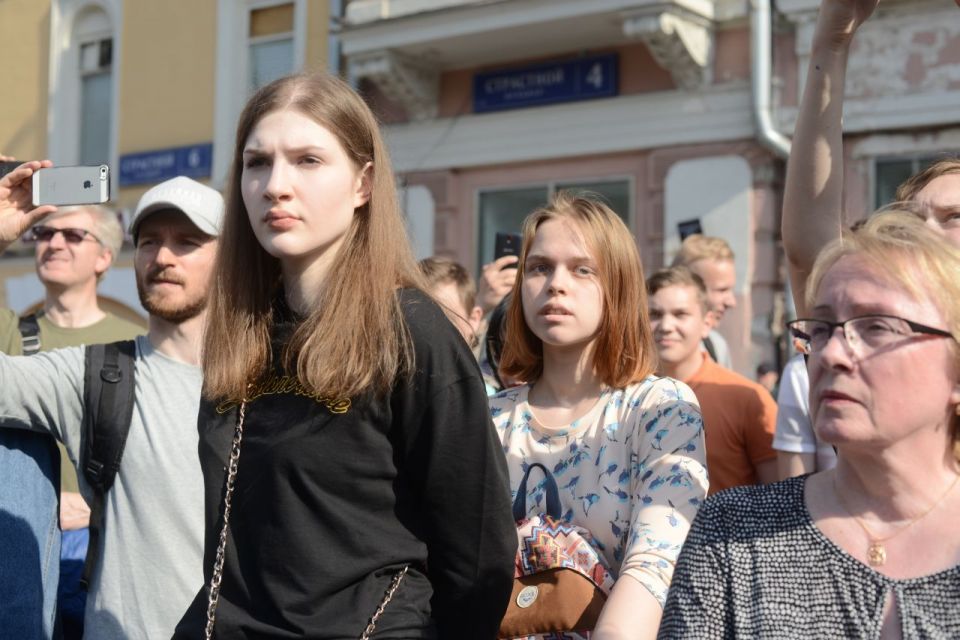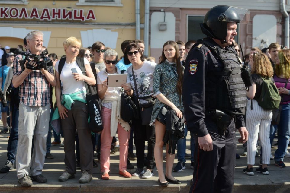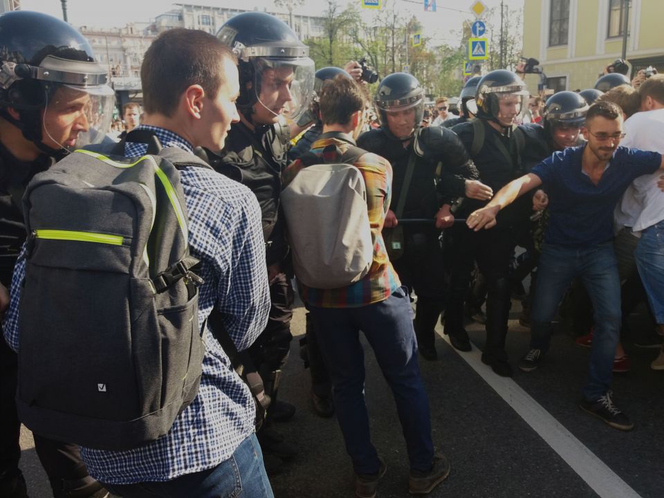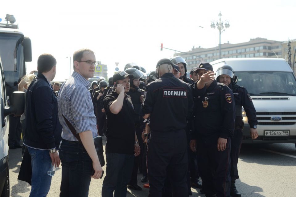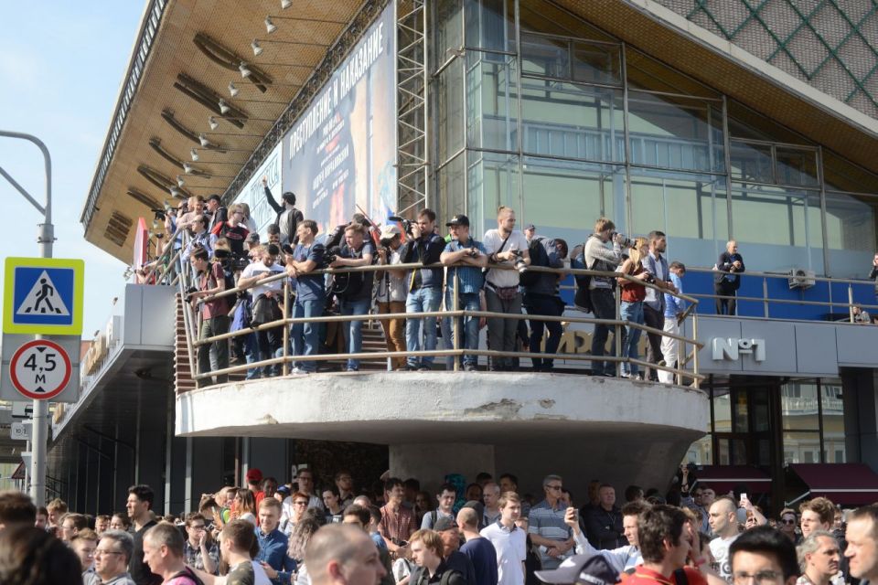 Навальный призвал своих сторонников и всех несогласных с "переизбранием" Владимира Путина выйти на Пушкинскую площадь. Уже в 13:30 атмосфера на площади была давящей: жара, духота, противостояние казаков и нодовцев с начинающими собираться свободными гражданами. На подступах сотрудники полиции обыскивали подростков и требовали документы.