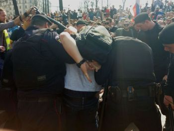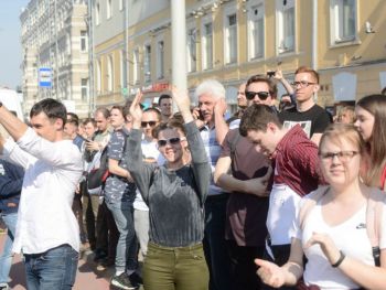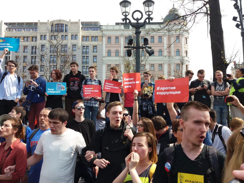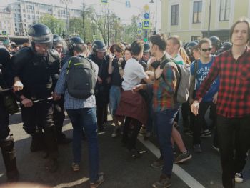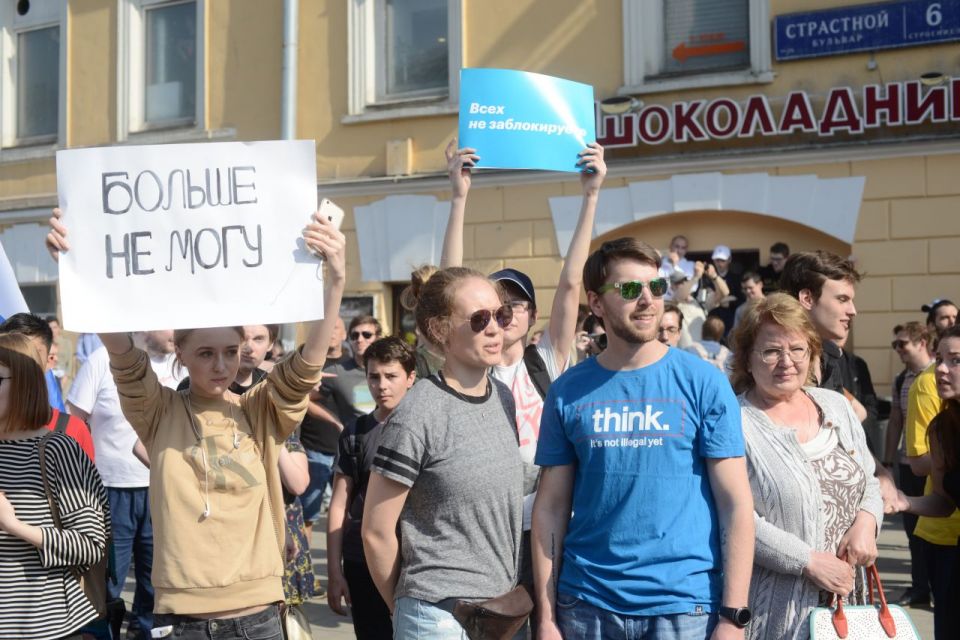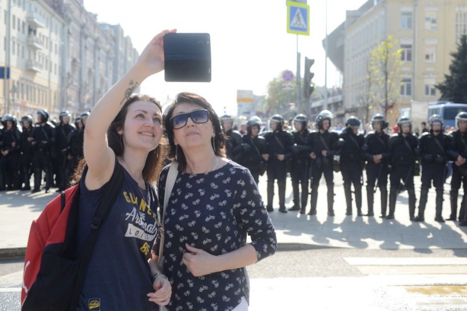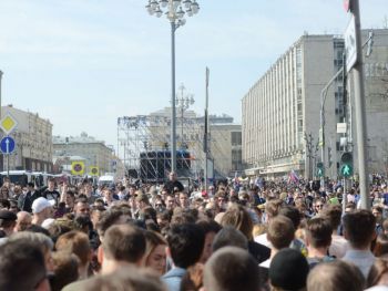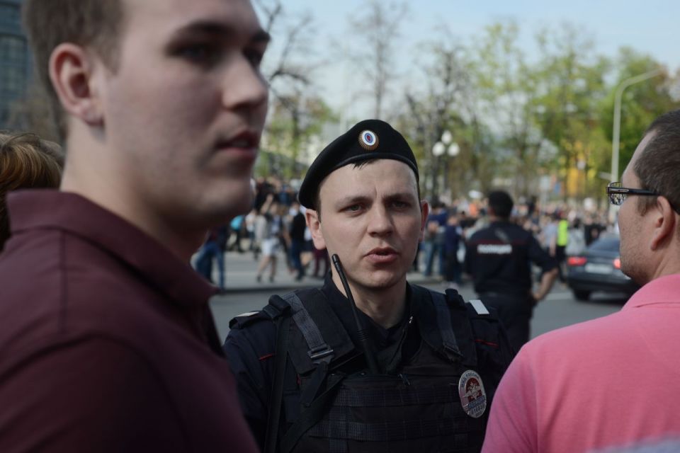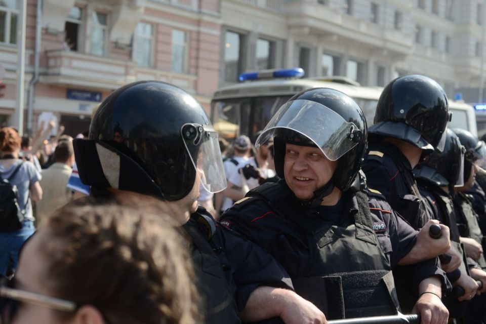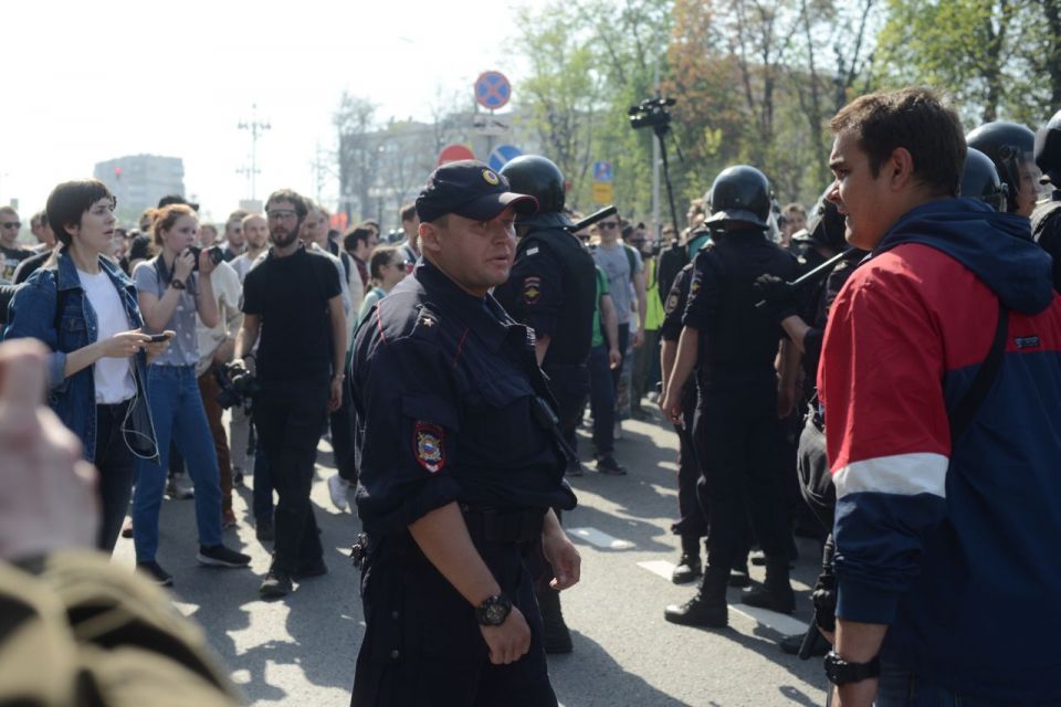 Навальный призвал своих сторонников и всех несогласных с "переизбранием" Владимира Путина выйти на Пушкинскую площадь. Уже в 13:30 атмосфера на площади была давящей: жара, духота, противостояние казаков и нодовцев с начинающими собираться свободными гражданами. На подступах сотрудники полиции обыскивали подростков и требовали документы.