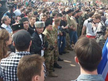 С самого начала казаки оцепили памятник Пушкину (чтобы не сбежал?). Провоцировали драки с несогласными, нападали толпой и тут же прятались за спинами полицейских. Где-то я такое видел, ах, да, это ж титушки! Просто титушки! Постепенно казаки оказались "в кольце врагов" — их окружили. Ближе к 14:00 Площадь взорвалась криками "Россия будет свободной!". Полиция начала предупреждать о "недопустимости, непроходимости и спецсредствах". Обычная их песня. Ну а потом ринулись на задержания, и тут-то казаки разомкнули кольцо и с криком "работаем" бросились изо всех сил помогать своим коллегам на постоянном пайке.