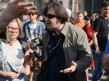 Ненадолго появился Навальный. Есть у корреспондентов такая игра — "успей сфотографировать Навального до того, как его унесли". Сегодня у нас получилось.